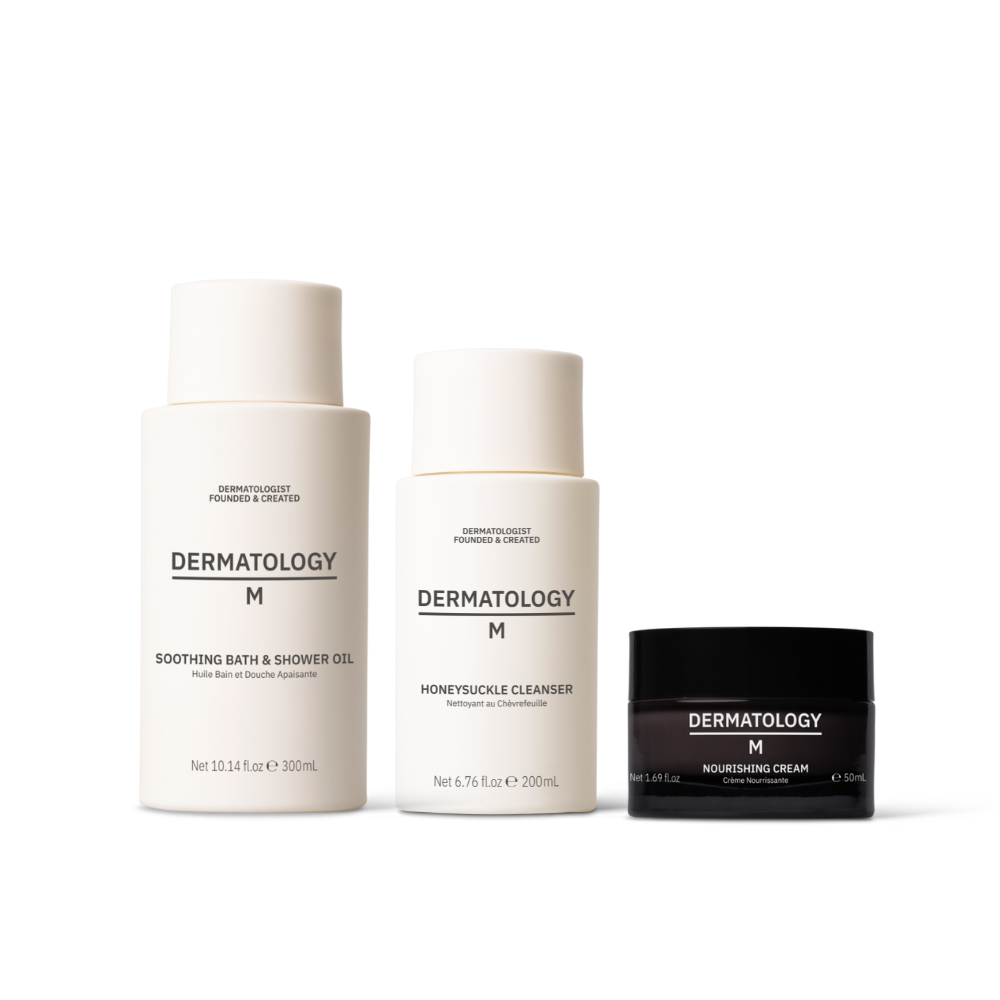 Three everyday essentials designed to cleanse, soothe and strengthen sensitive, dry and eczema-prone skin - face and body.